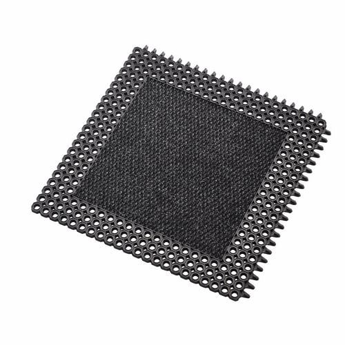 - Kombinerer funksjonaliteten fra avskrapningsmatten ved at den i tillegg har teppeinnlegg til å tørke av skoene på