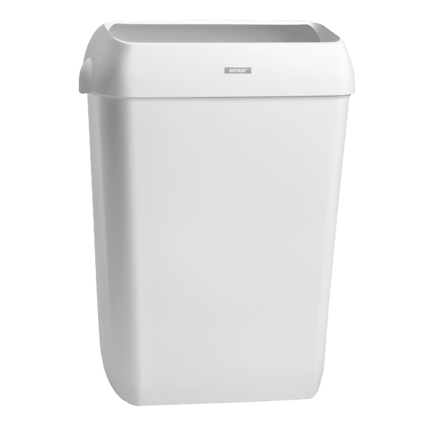 Katrin hvit 50 liters søppelbøtte til store rom. Medfølgende lokk har åpning i topp og tas enkelt av og på. Brakett for veggmontering medfølger. Anbefales for å lette vasking av gulvet på toalettet. Bøtte og lokk i resirkulerbar ABS hardplast. Mål: høyde 575 mm, bredde 420 mm og dybde 280 mm