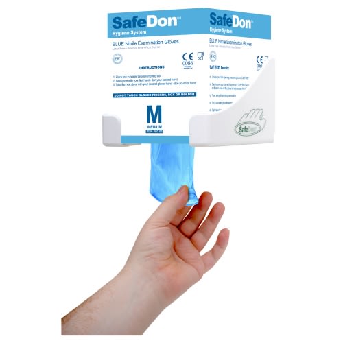 SafeDon Hygiene System forebygger smittespredning. Det nye og brukervennlige SafeDon Hygiene System dispenserer kun én og én hanske med mansjett først. Hanskens mest kritiske overflater som tommel, fingre og håndflate blir ikke berørt. Fordi hanskene dispenseres fra undersiden av boksen, unngår man luftkontaminering av ubrukte hansker. Eliminerer uttak av uønskede hansker og reduserer derfor svinn. EN455-1,2,3,4 EN420, EN388 og EN374. EK-sertifisert.