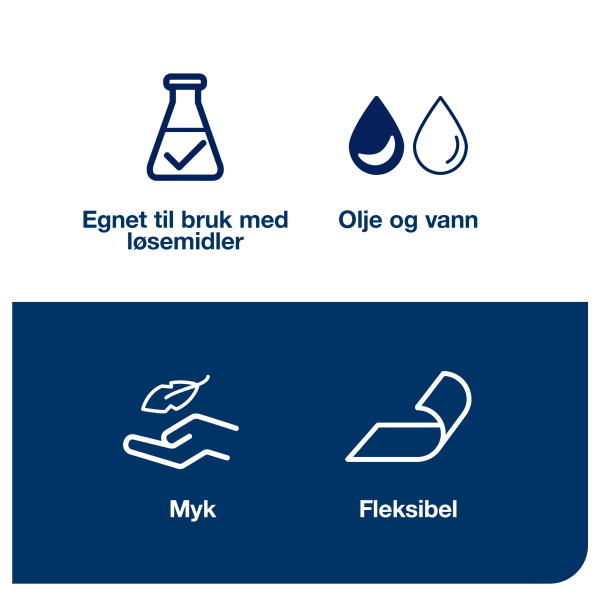 Gjør rengjøringsrutinen mer effektiv med Tork Industriklut. Med exelCLEAN®-materialet kan du bruke opptil 41 % mindre løsemidler og få økt effektivitet. I tillegg kan klutene brukes med de fleste løsemidler og er egnet til bruk på de fleste arbeidsplasser. Kultene er både myke og fleksible, og takler fett, olje og skitt på selv de mest utilgjengelige stedene, uten å skrape opp noe. Disse engangsklutene fjerner behovet for filler og innleide kluter, noe som også reduserer avfall med 85 %. Tork har til og med senket CO2-utslippene for Tork exelCLEAN® med 28 % siden 2011.* *Livsløpsvurdering (LCA) utført av Essity og IVL Svenska Miljöinstitutet i april 2021.