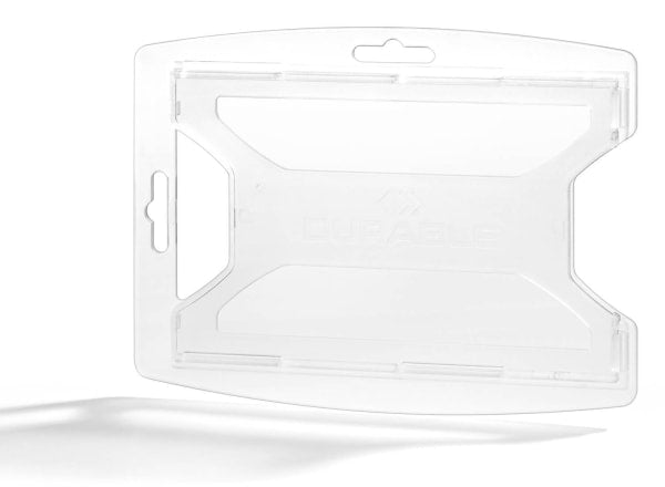 Denne kortholderen er produsert av 70 % resirkulert polypropylen og har en tidløs, plassbesparende design. Kortet settes enkelt inn og tas ut igjen via et praktisk tommelgrep på siden. Holderen kan brukes både stående og liggende, og festes fleksibelt med klips, jojo, kjede eller nøkkelbånd.