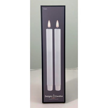 2 stk Delight LED kronelys til innendørs bruk. Led lyset har timerfunksjon på 2, 4, 6, 8 timer. Merk at en Delight fjernkontroll er nødvendig for at lysenes timer-funksjon skal fungere. For innendørs bruk. Kronelysene bruker 2xAAA batterier. Batteri medfølger ikke. Estimert brennetid er ca. 300 timer. Diameter: 2,2 cm. Høyde: 24 cm.