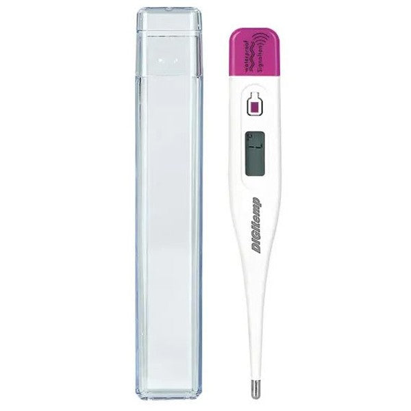 DIGItemp, digitalt febertermometer for nøyaktige resultater, med signaltone og automatisk avstenging. Termometeret er vanntett, uknuselig og fri for kvikksølv. Utskiftbare batterier følger med.
