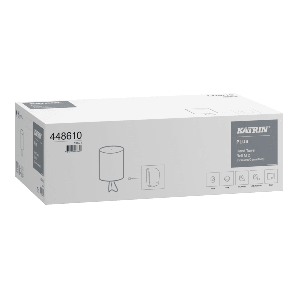 Katrin Plus M2 er et hvitt, ekstra mykt 2-lags tørkepapir uten hylse. Bør benyttes i dispenser for tørkerull/senterrull/centerfeed. Papiret har høy styrke for effektiv tørking, samt rask og høy absorpsjonsevne. Passer i alle Katrin senterrull M dispensere eller tilsvarende. Produktet er godkjent for kontakt med næringsmidler og egner seg best til kjøkken/produksjon. Bør ikke benyttes som håndtørk i toalettrom da dette vil kunne gi unødvendig høyt forbruk