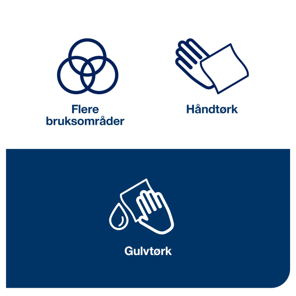 • 2-lags allsidig tørkepapir som er slitesterkt og har god absorberingsevne