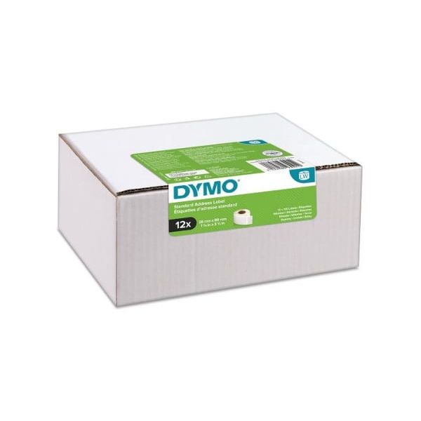 Adresseetikett Standard 28mmx89mm hvit. 130 etikett pr. rull. 12 ruller i en økonomipakning.