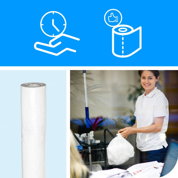 • Spar rengjøringstid - disse avfallsposene kommer i en rull som gjør det enkelt for renholdspersonalet å tømme og vedlikeholde søppelkassene.