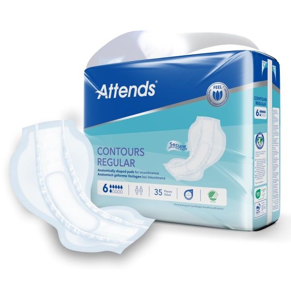 - Attends Contours Regular er en kroppsformet bleie for tung inkontinens.
