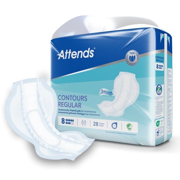 - Attends Contours Regular er en kroppsformet bleie for tung inkontinens.