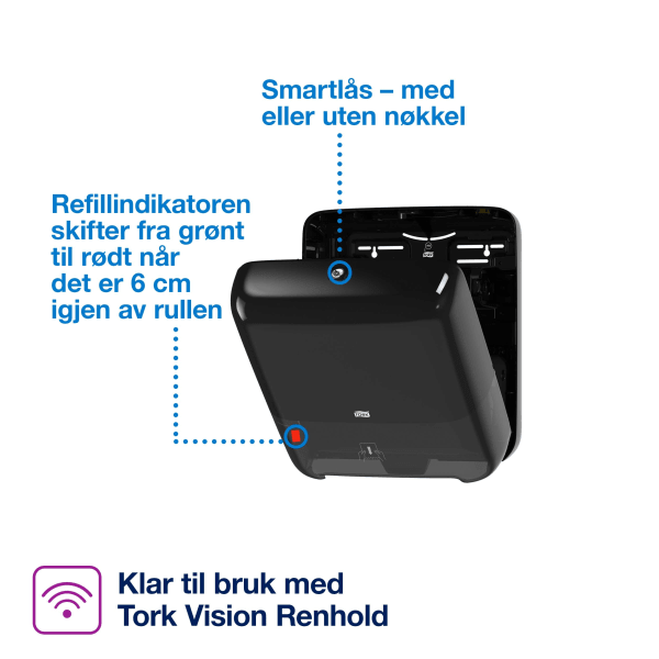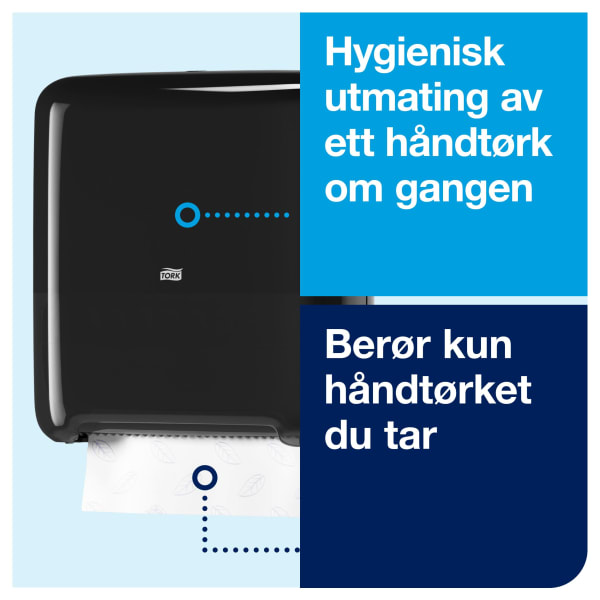 - Økonomisk og hygienisk dispenser som gir ett tørkepapir om gangen med «stub-roll»-funksjon