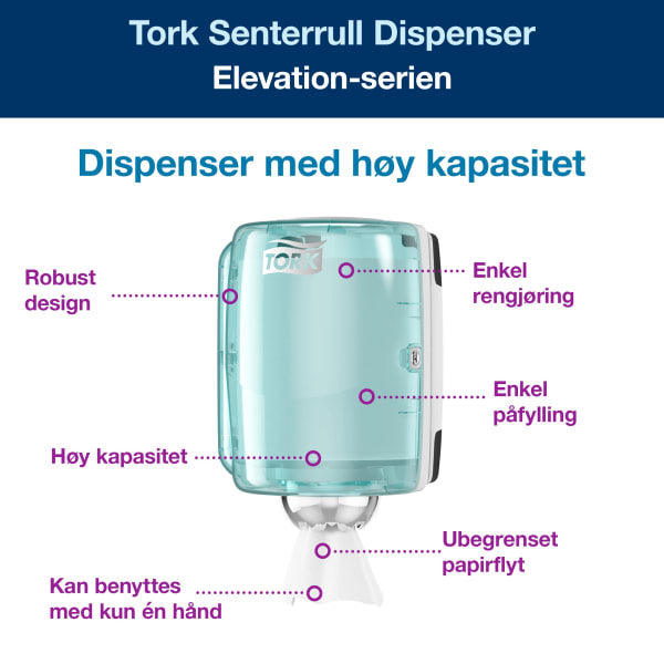 Dispenser Tork M2 Senterrull turkis/hvit