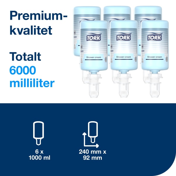 Tork Dusjsåpe for hoteller, skoler og treningsstudioer er en pleiende og fuktighetsgivende dusjsåpe med en forfriskende duft som etterlater huden myk. Spar de ansatte for tid med enkel påfylling på under ti sekunder (basert på en intern test av påfyllingstid for såpe). Denne refillen er egnet til Tork S4-dispensere, som er sertifisert brukervennlige og bidrar til god hygiene for alle brukere.