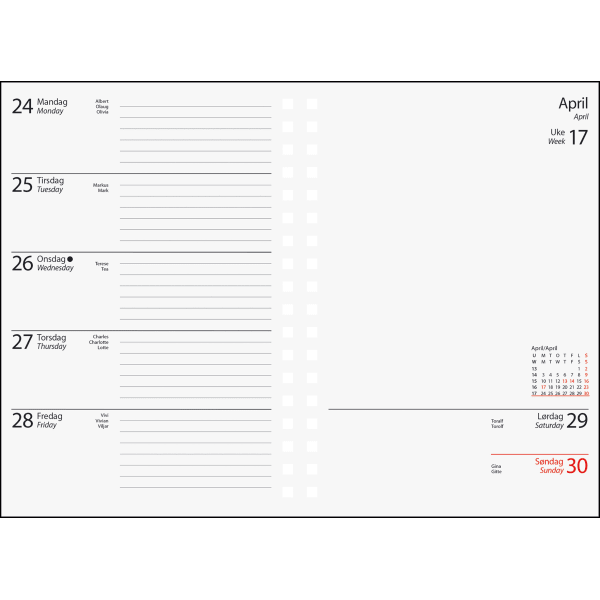 - Bredere kalender, som gir god plass for notater