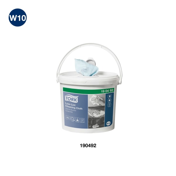 Tork Rengjøringsklut Spesial er sterk og fleksibel. Kluten kommer på rull i en bøtte som lar deg lage dine egne våtservietter ved bruk av de kjemikaliene du trenger. Fordi den bare mater én klut av gangen og har et lokk som er enkelt å lukke, tørker ikke klutene ut.