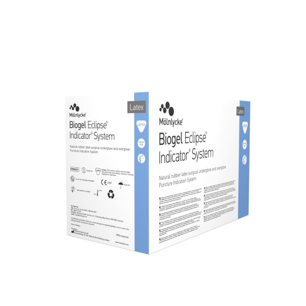 Biogel® Eclipse er en steril operasjonshanske laget av naturgummilateks, og er betydelig mykere enn andre hansker i naturgummilateks. Den kan brukes alene, eller sammen med Biogel® Eclipse Indicator® Innerhanske for å danne et fargeindikeringssystem som er dokumentert å gi tydelig, rask og stor fargeindikasjon ved perforasjon. Hansken har utmerkede barriereegenskaper, og kombinerer svært god passform, komfort og taktil følsomhet. Den er også testet og godkjent for bruk med kjemoterapeutiske midler**. Biogel hansker er designet for optimal komfort og høy taktil følsomhet. Produksjonen følger strenge kvalitetsstandarder, inkludert flere vaskesykluser og lufttesting av hver enkelt hanske for å sikre pålitelighet og sikkerhet. ** Se eget datablad for gjennombrudstid og brukerveiledning for kjemikalier og kjemoterapeutiske midler.