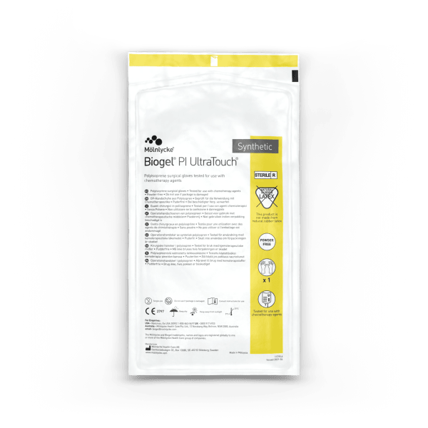 Biogel® PI UltraTouch® er en stråfarget syntetisk operasjonshanske i polyisopren. Det er en universalhanske som tilbyr utmerket barrierebeskyttelse, passform, komfort og fingerfølsomhet. Biogel hansker er utviklet for å være komfortable med god taktil følsomhet. De er produsert ved hjelp av strenge kvalitetskontroller, mange vaskesykluser og lufttest av hver hanske. Testet og godkjent for bruk ved kjemoterapeutiske midler, se eget datablad for gjennombrudstid og brukerveiledning for kjemikalier og kjemoterapeutiske midler.