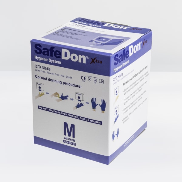 SafeDon Hygiene System er et revolusjonerende dispenseringssystem for engangshansker. Unngå berøring av hanskens mest kritiske overflater, boksen, og de andre hanskene i boksen ved å enkelt dispensere en og en hanske med mansjetten først. Denne unike metoden har dokumentert opp til 96% renere hansker på sykehus og sykehjem, og redusert svinn med opp til 30%. Unngå hansker som faller på gulvet, kontaminerte ubrukte hansker, og unødvendig høye brukskostnader og svinn med SafeDon Hygiene System.