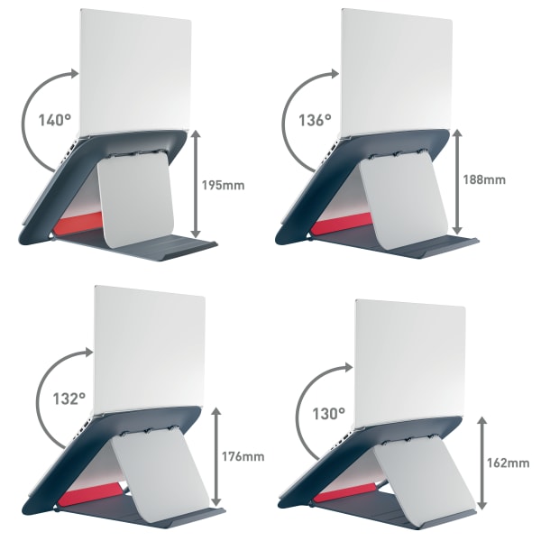 Leitz Ergo Cosy Laptopstativ hever skjermen på laptopen for å øke visningskomforten og bidra til å forbedre holdningen. Ved å bruke et laptopstativ vil det også fremme luftstrømmen, holde det bærbare batteriet og andre komponenter kjølige for å opprettholde høy ytelse. Med sin minimalistiske design og matte finishfarger vil dette stilige bærbare stativet forbedre helse og velvære ved enkelt å lage det perfekte aktive set-up. Kombiner med andre Leitz Ergo-produkter for et innbydende og fleksibelt arbeidsområde som holder deg i bevegelse hele dagen.