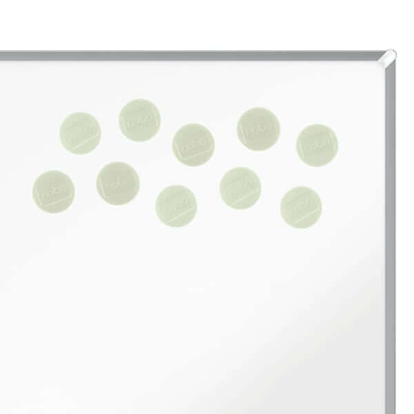 Nobo Whiteboard magneter 38 mm, styrke 2,5 kg, pakke med 10 stk. hvite runde magneter. Disse sterke magnetene er det perfekte verktøyet for å vise og visualisere ideer for samarbeidende idédugnad på magnetiske tavler eller andre magnetiske overflater. De kan for eksempel brukes som kjøleskapsmagneter for å henge opp påminnelser og viktige meldinger hjemme. En av disse magnetene kan holde opptil 20 stk. 80g A4-ark, de er 38 mm i diameter. De har en magnetstyrke på 2,5 kg.