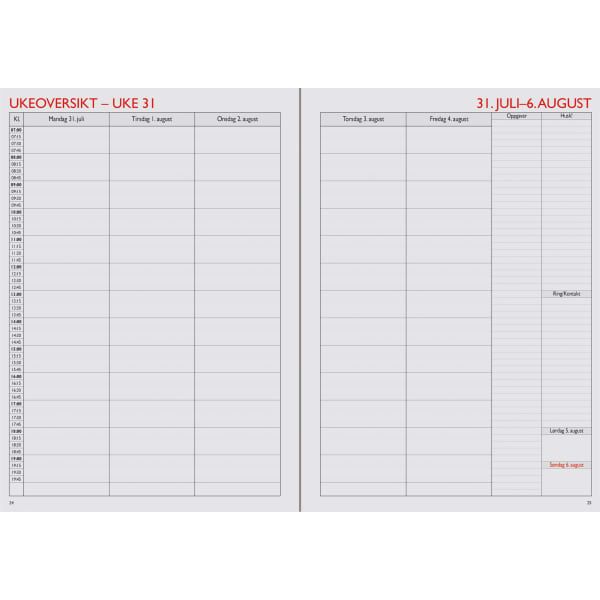 - Ukeoversikter og rikelig med plass til notater og oppgaver