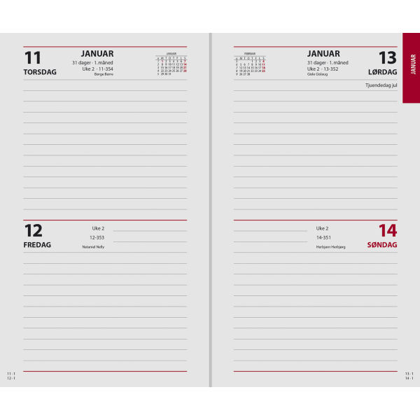 - To dager per side med røde søndager og helligdager