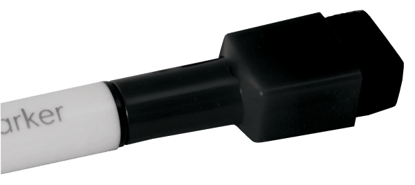 • Whiteboardpennene har en pussekloss integrert i hetten